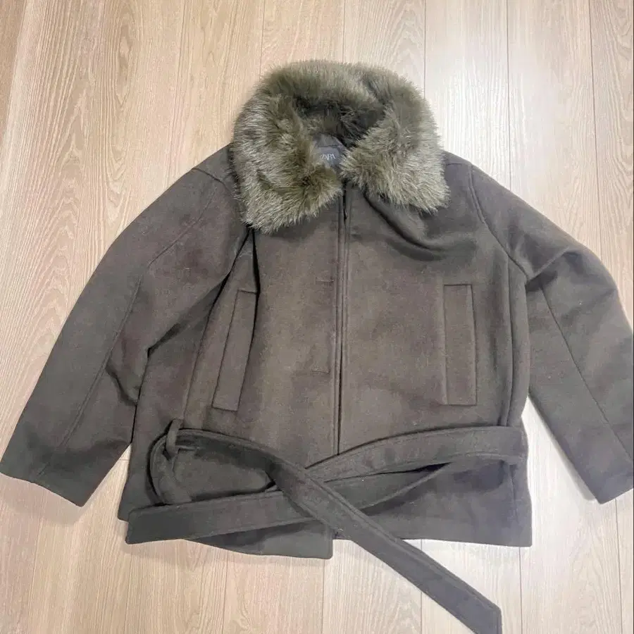 ZARA 울 퍼 자켓 숏 기장 벨트