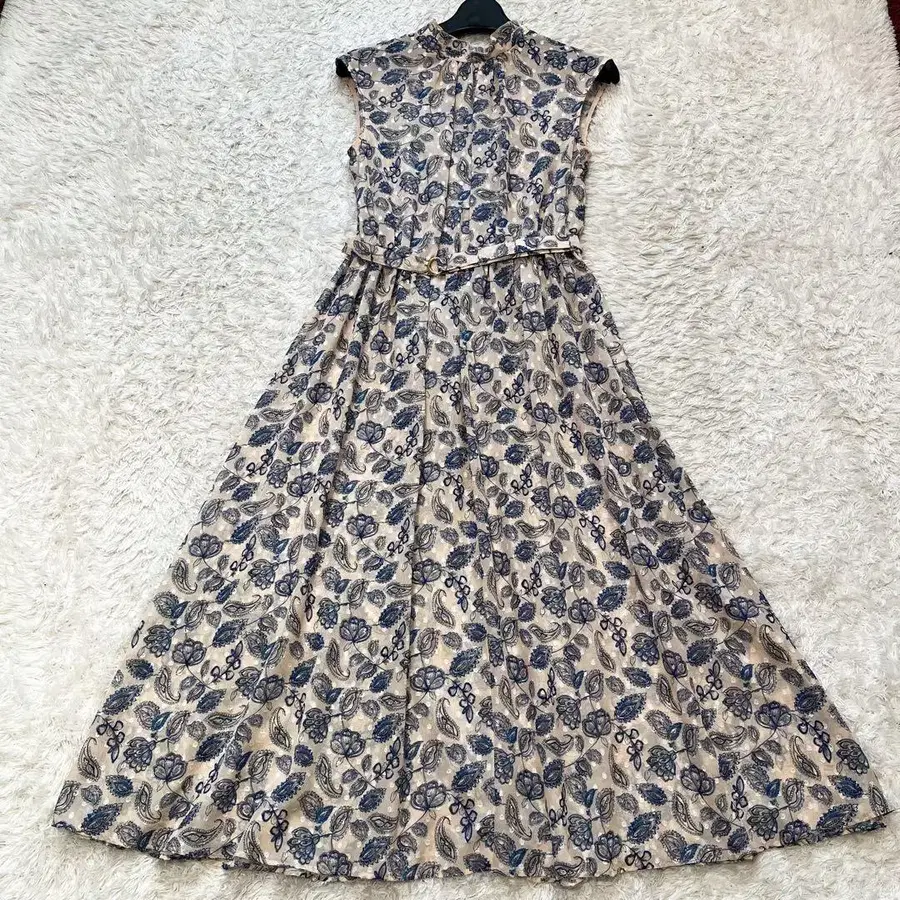ANAYI 자카드 페이즐리 프린트 원피스 도트 모티브 블루