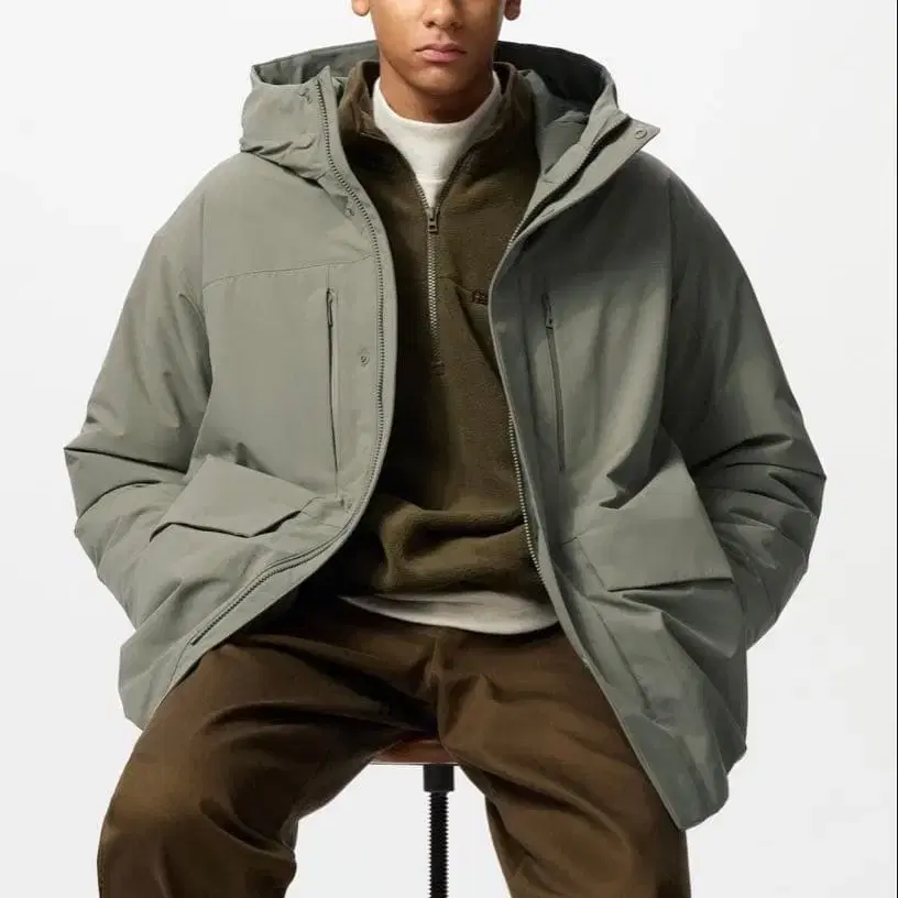 하이브리드 다운 후드티 카키 XL 유니클로/UNIQLO