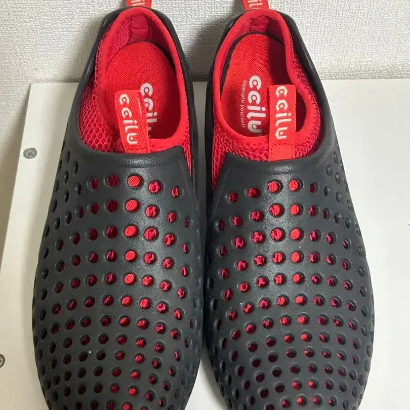 [ 미사용 새상품 ] ecillu 메쉬 클로그 샌들 블랙/빨간색