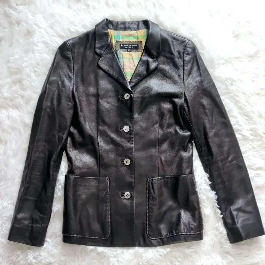 램 가죽 양가죽 체크 무늬 테일러드 자켓