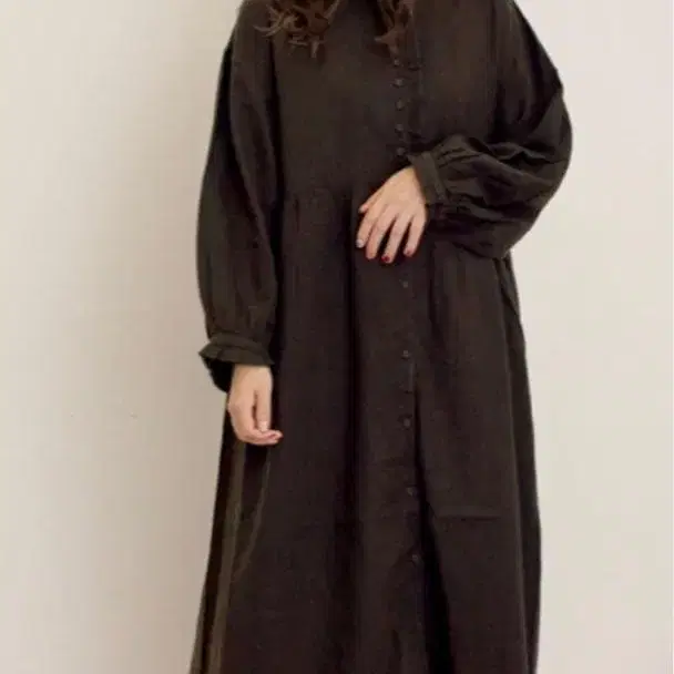 사만사 모스모스 크로스 린넨 프릴 원피스 차콜 그레이