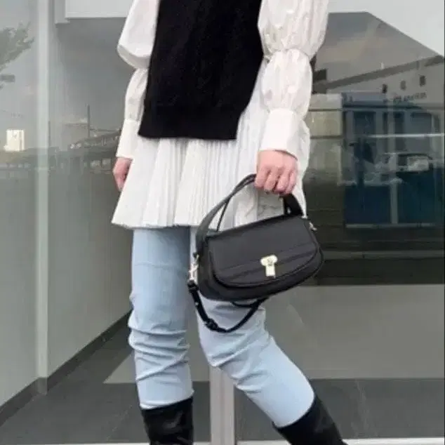 니트 볼레로 블랙 라메 페더 니트 베스트 택 포함 2way 아카이브