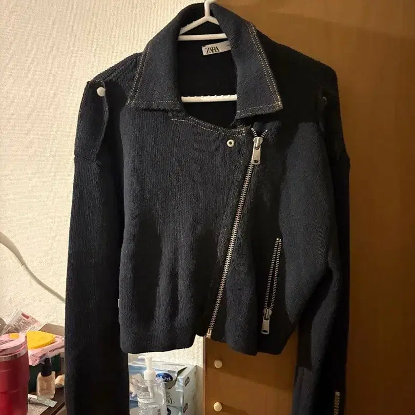 ZARA 다크 블루 니트 라이더 자켓