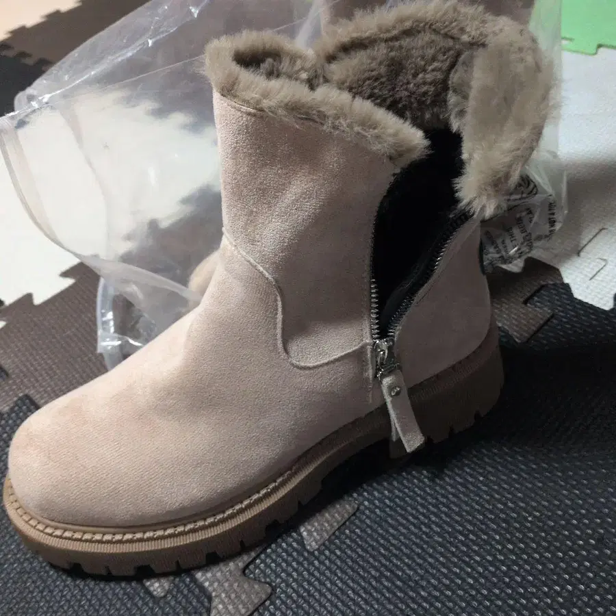 베이지 퍼 포함 스웨이드 부츠