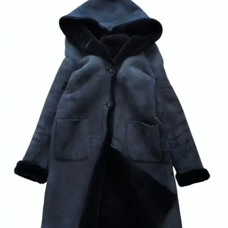 프릭스스토어 양가죽 다크 블루 무스탕 코트 후드 부착 보아
