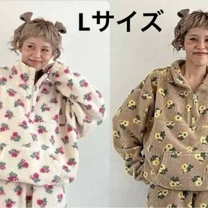 ayano 콜라보 꽃무늬 보아 하프 지퍼 2세트