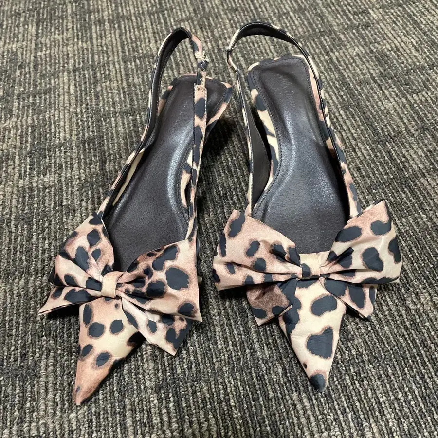 레오파드 무늬 리본 포함 슬링백 펌프스