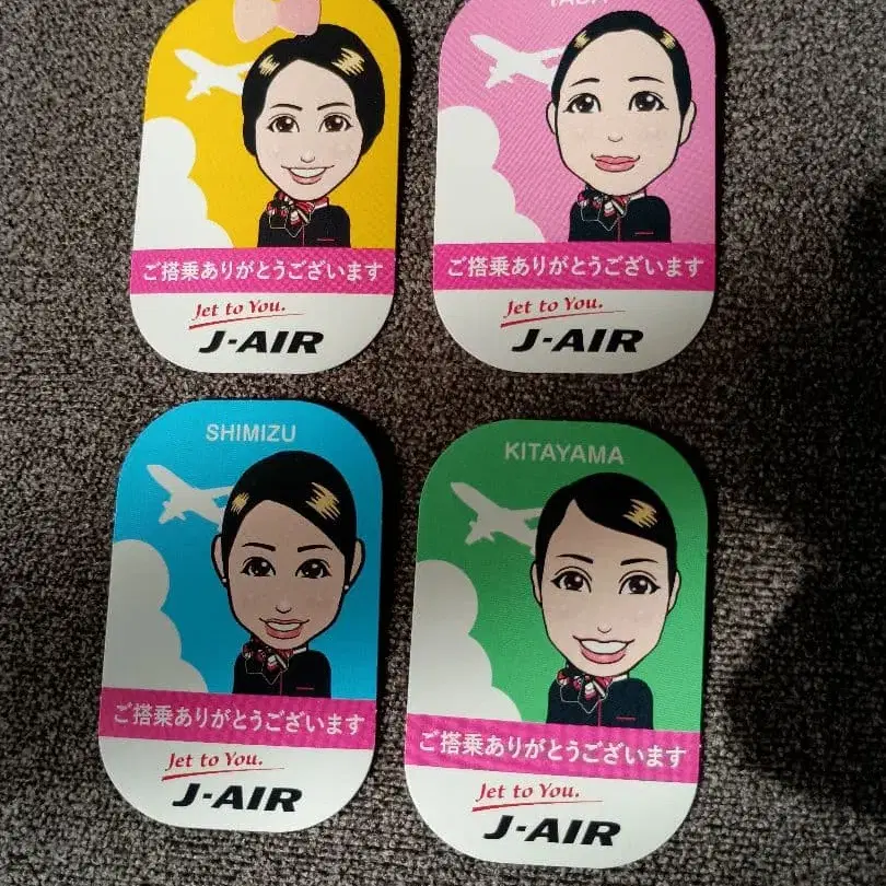 J-AIR CA 캐리커처 씰입니다. 4장 판매입니다. 현재 배포는 종료되었으므로 레어입니다. 접힘, 작은 흠집이 있는 것이 있으므로 완벽을 추구하시는 분은 삼가해 주십시오. #항공기 #JAL #캐빈어텐던트 #캐리커처씰 #J-AIR #CA #레어 #신 항공사 - JAL