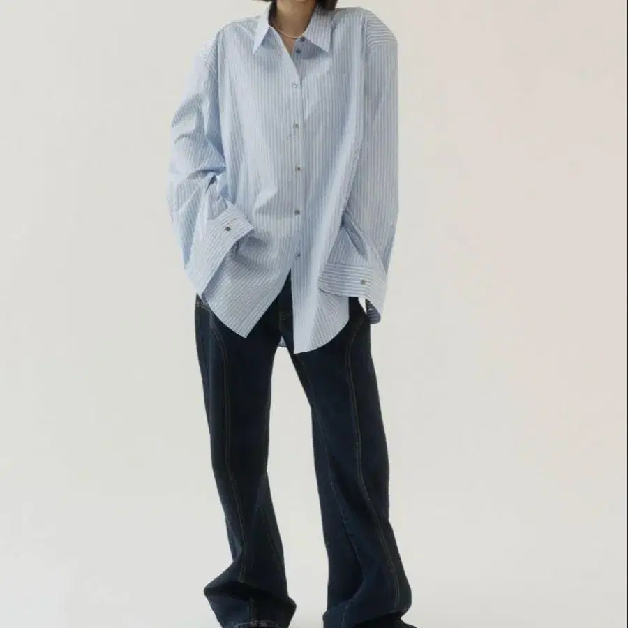 Knuth Marf 라벨 오버 셔츠(유니섹스) 블루