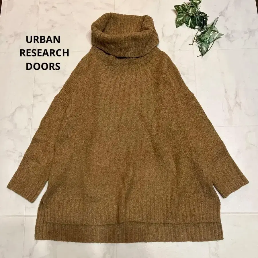 어반 리서치 도어스 스트레치 부클레 와이드 터틀 니트 카멜
