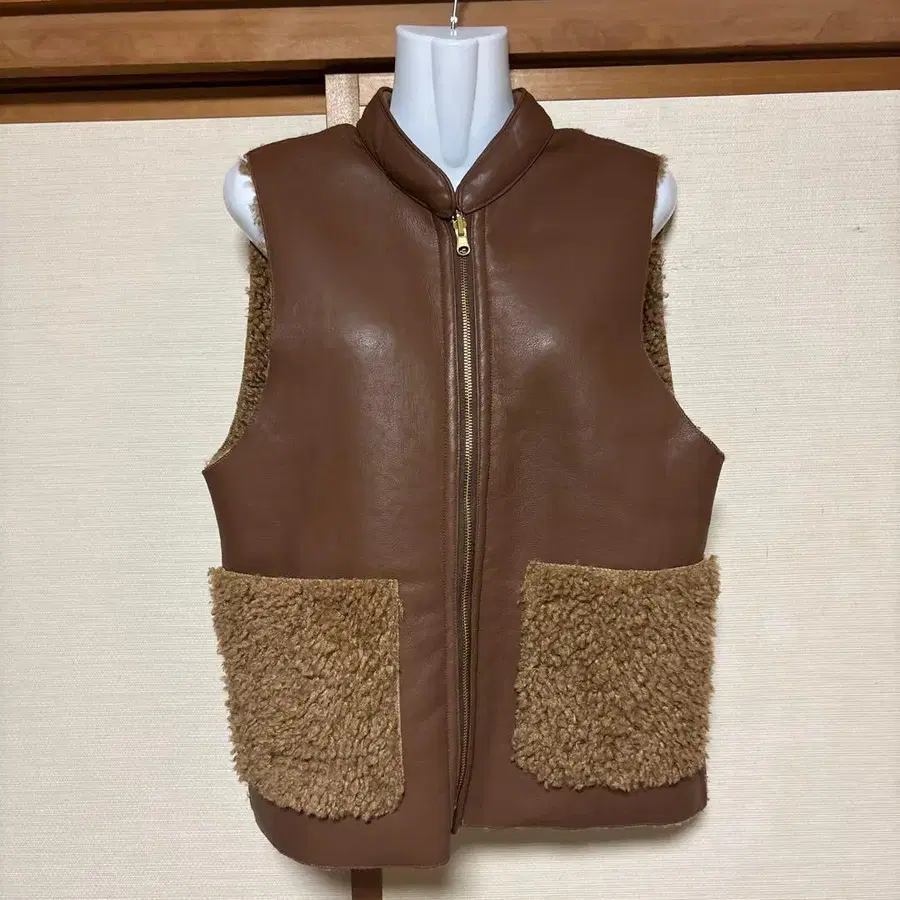 브라운 합성 피혁 보아 베스트 리버서블