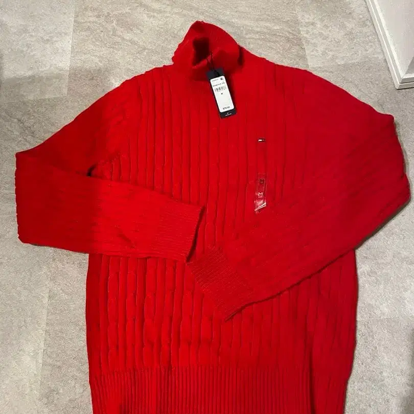새상품 타미힐피거 여성용 니트 상의 빨간색 레드 스웨터