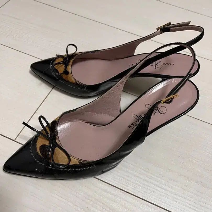 긴자 카네마츠 블랙 스틸레토 슬링백 펌프스