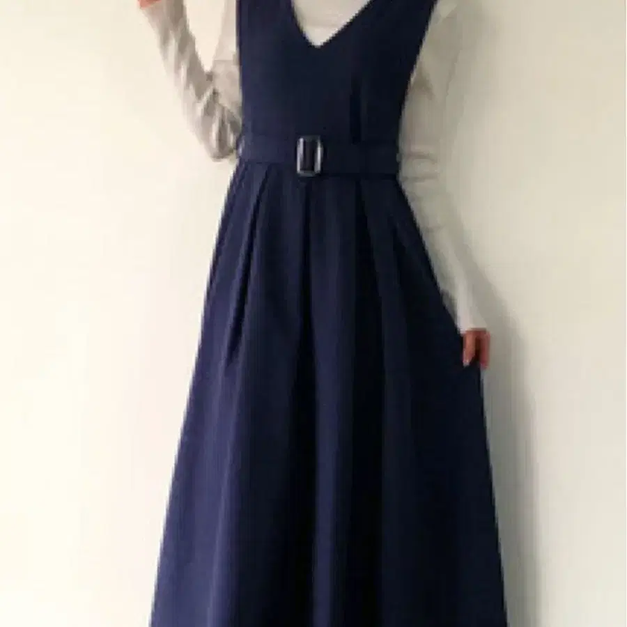 JUNOAH 주노아 오버롤 스커트 무지 네이비