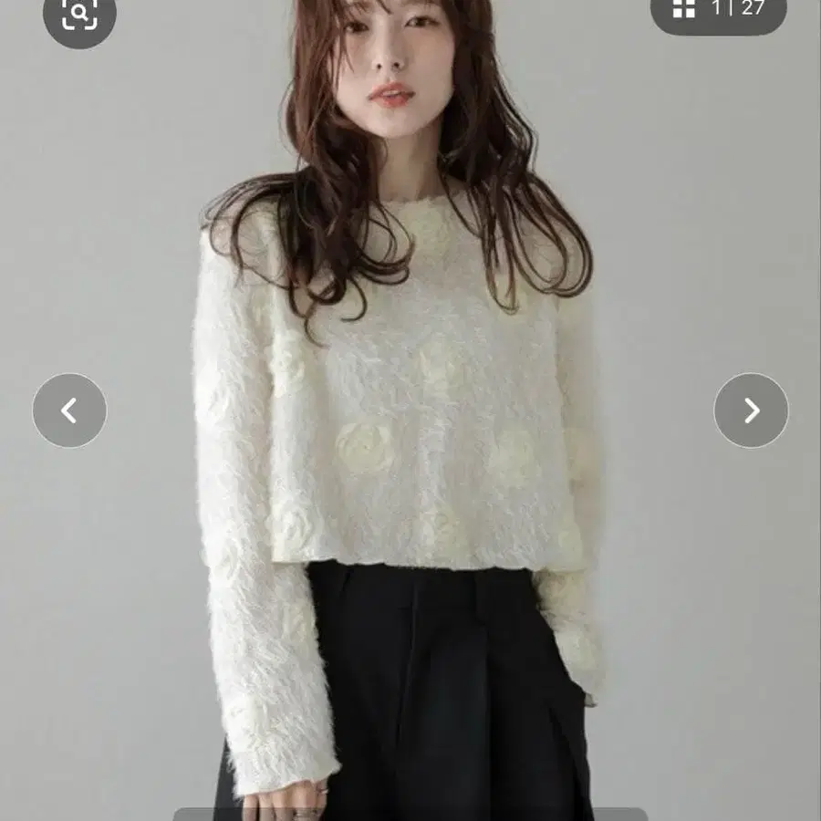 부드러운 페더 니트에 플라워 모티브를 더한 아이템입니다.