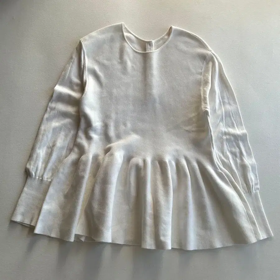 이에나 페플럼 니트 풀오버 펄 버튼 실크 코튼 화이트