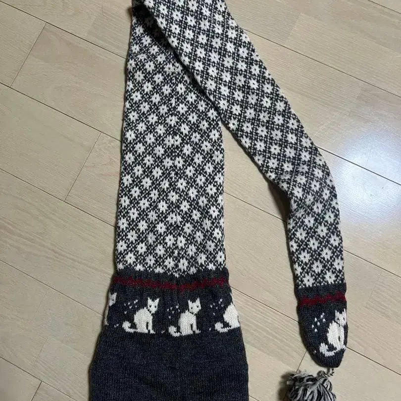 에스토니아 탈린 모자 머플러 고양이 패턴 눈꽃 디자인