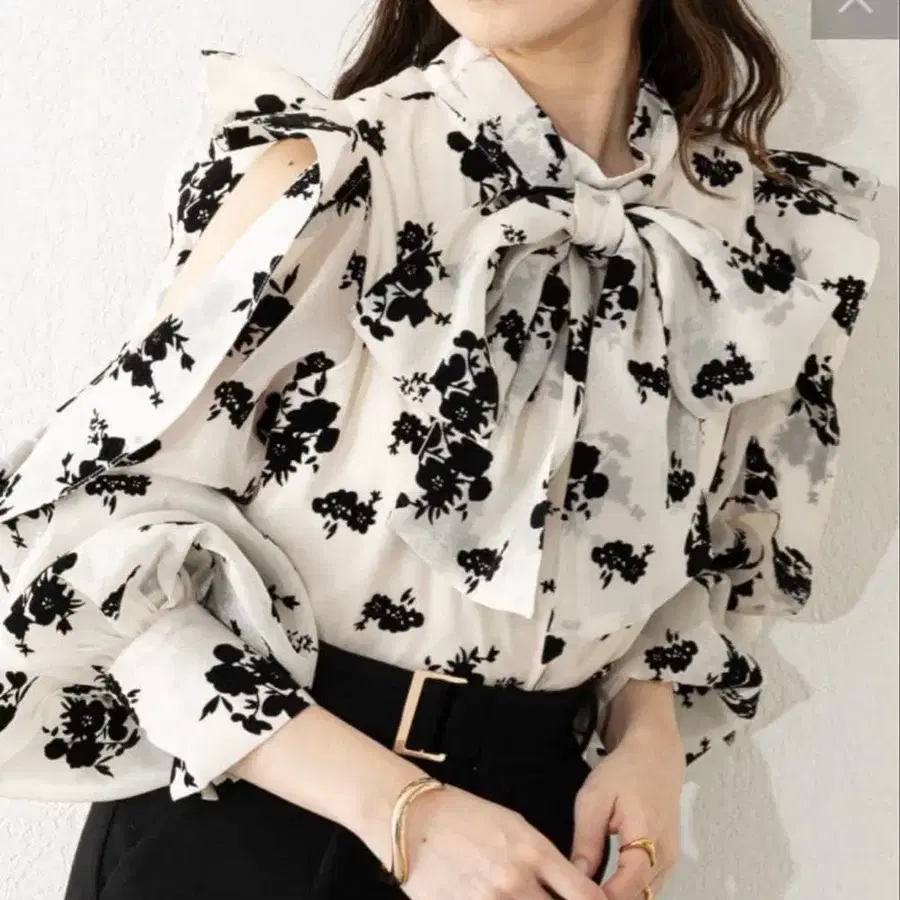 CHICO 꽃무늬 소매 프릴 어깨 트임 보타이 블라우스