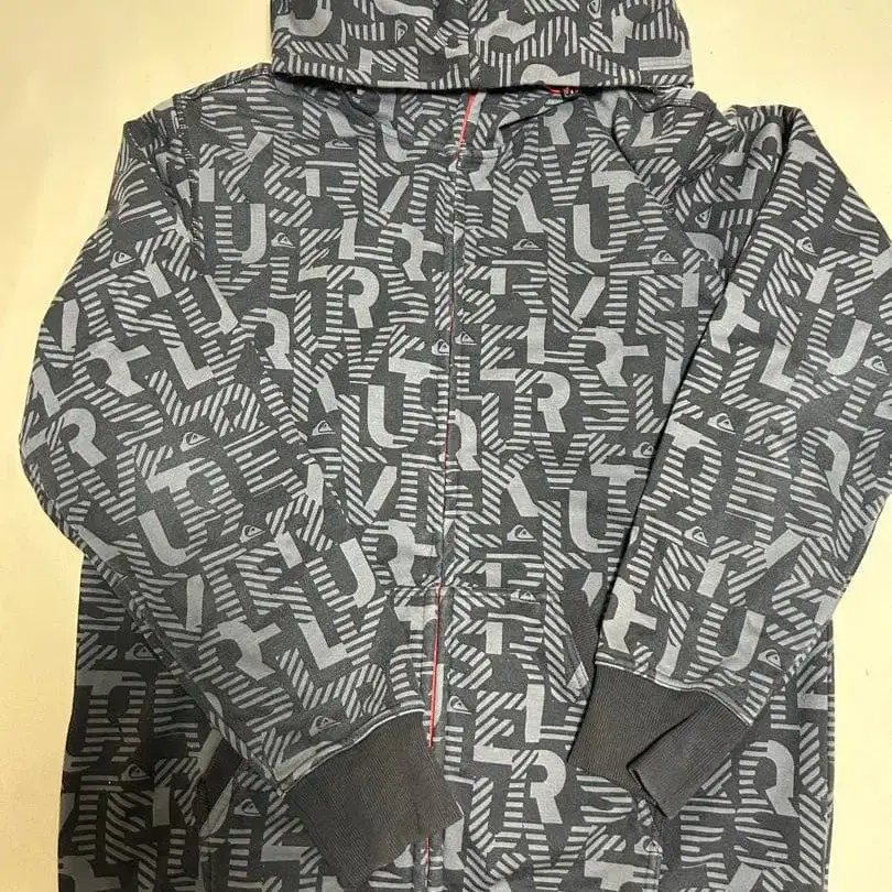 [레어 XL] 퀵실버 안감 플리스 올 패턴 지퍼 후드티 블랙 빅 루즈