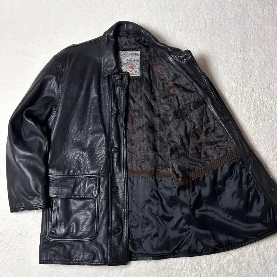 양가죽 레더 코트 하프 코트 안감 페이즐리 패턴 퀼팅 충전솜