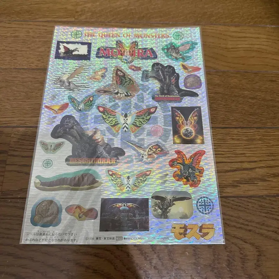 자동 번역되었어요. 원문보기모스라 스티커 시트입니다. 이것은 1990년대에 공개된 헤이세이 모스라 시리즈의 영화관 판매 상품입니다.
