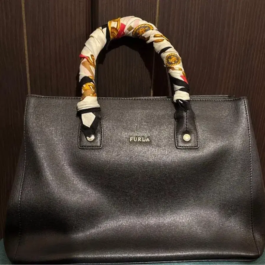 FURLA 블랙 스카프 포함 토트백