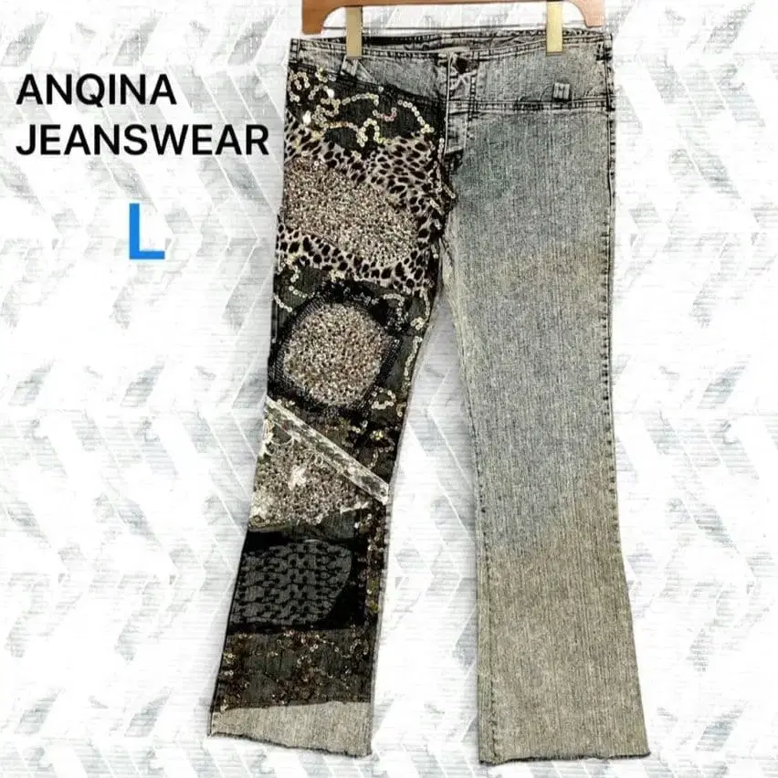 앙키나 스팽글 x 애니멀 패치 데님 팬츠 (L) 리메이크풍 개성파