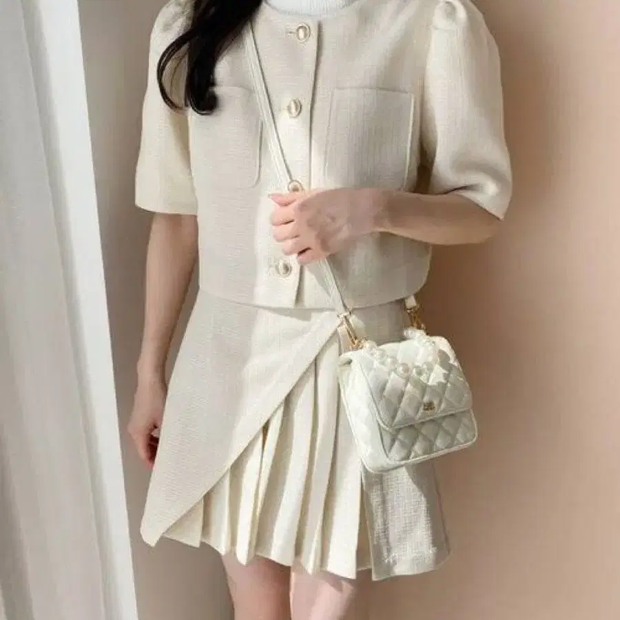 NICE CLAUP 트위드 숏 자켓 스커트 상의 세트