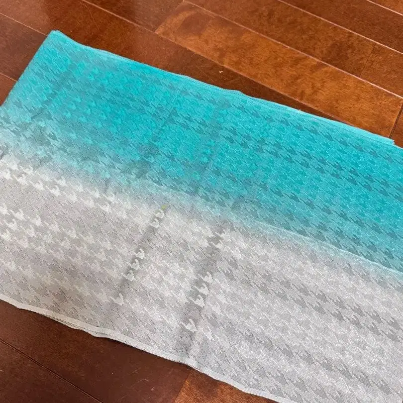 하운드투스 패턴 순수 실크 오비 장식 천 터콰이즈 블루