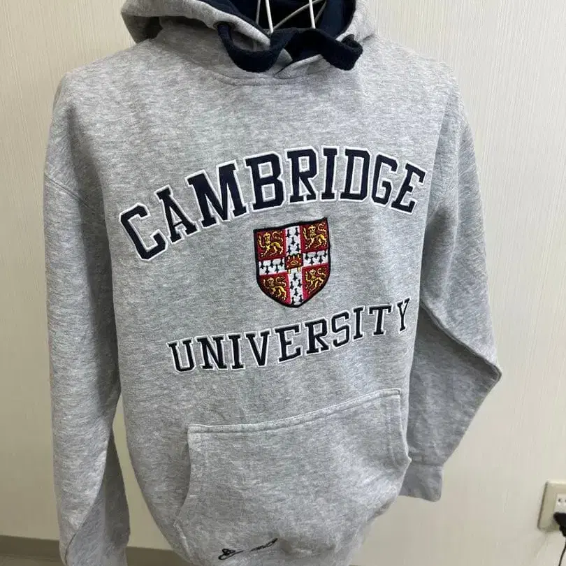 자동 번역되었어요. 원문보기그레이 색상의 후드티, 케임브리지 대학교 로고 부착.