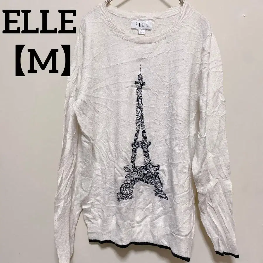 ELLE [ M ] 에펠탑 자수 긴팔 니트 화이트