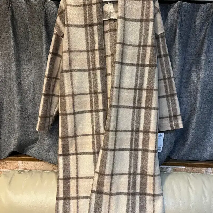 Simplicite 베이지 체크 무늬 롱 코트 F