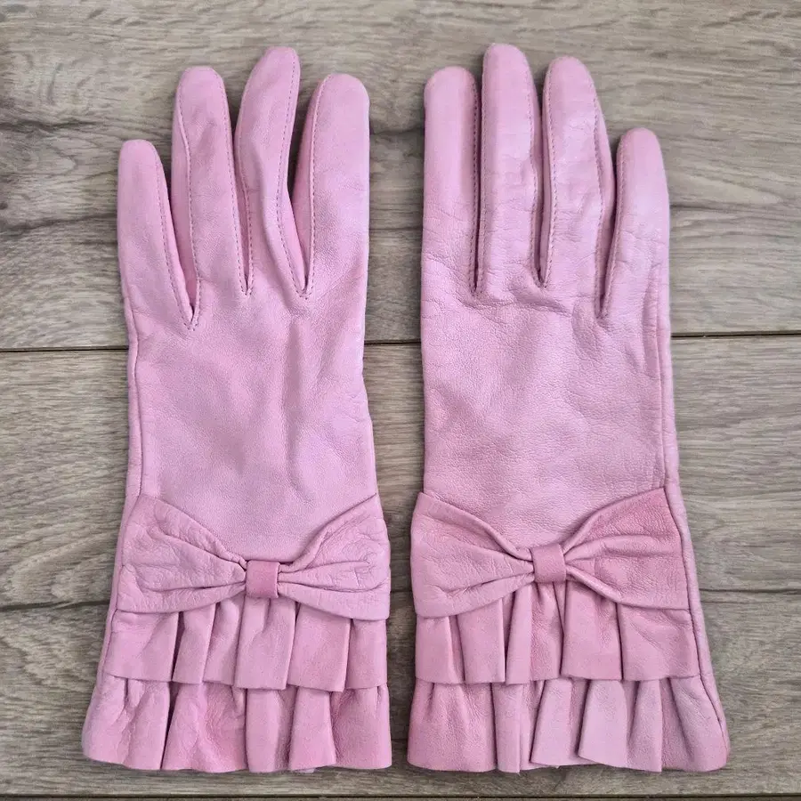 가죽 장갑 천연 가죽 핑크 알타 리본 귀여운