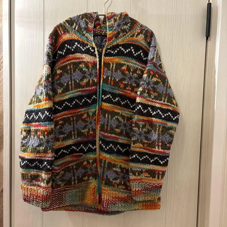 ARTESANIA 손뜨개질 컬러풀 집업 니트 후드티 S
