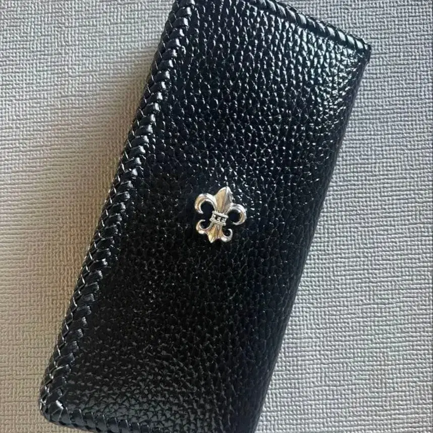천연 가죽 블랙 가죽 장지갑 플뢰르 드 리스
