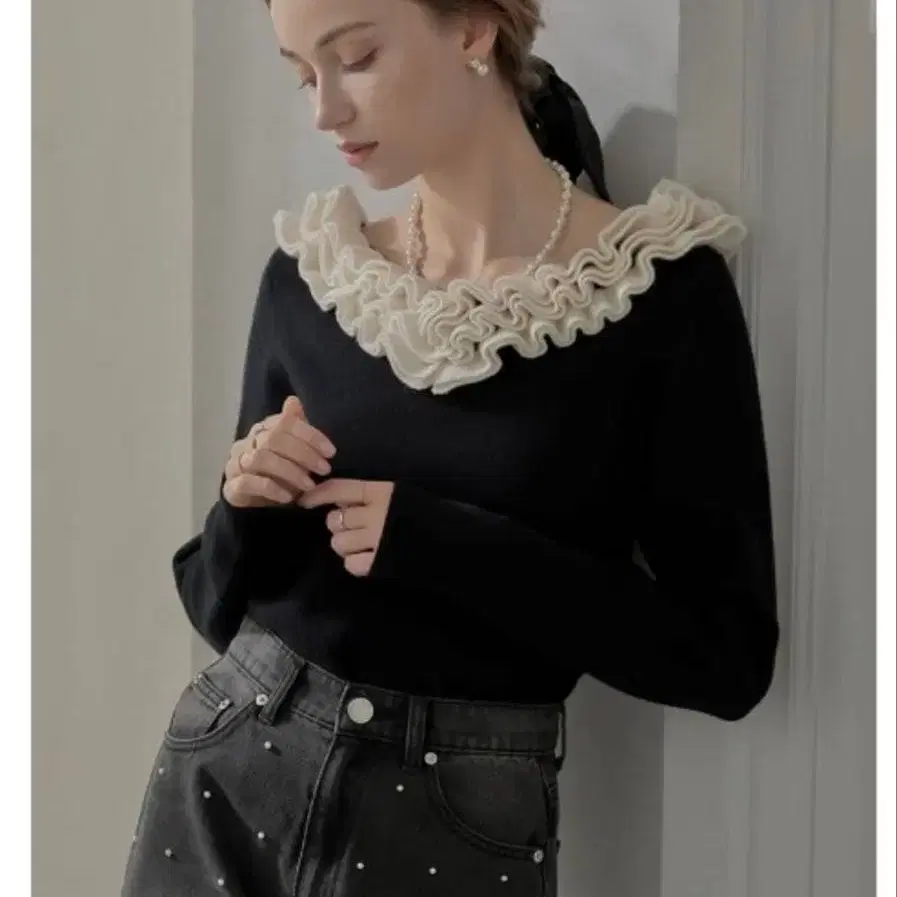 MEISM by Re:EDIT 프릴 V넥 니트탑
