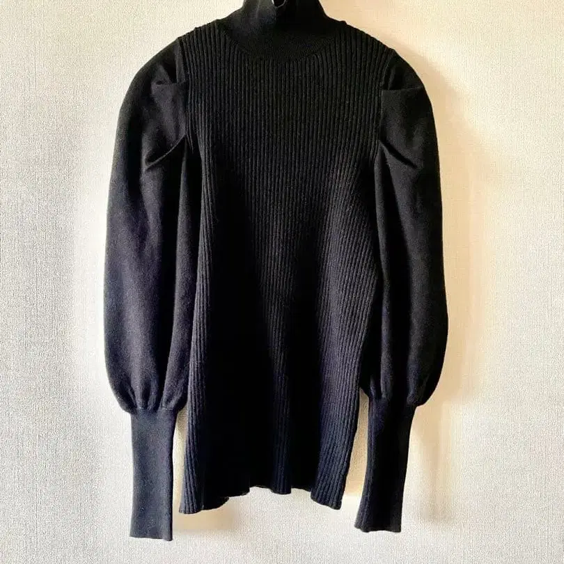 NOMINE 워셔블 퍼프 슬리브 슬림 하이넥 니트 새상품급