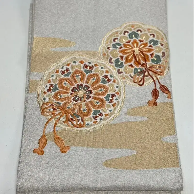 나고야 오비 꽃무늬 자수 꽃 화환 실버 계열