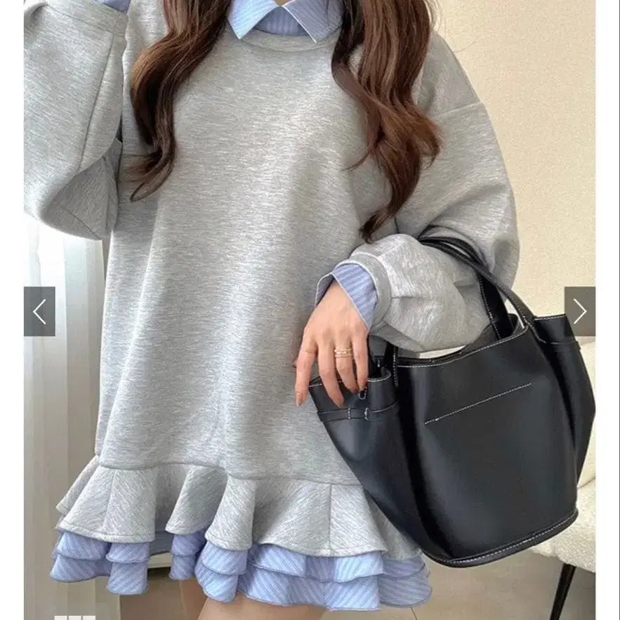 GRL 스트라이프 패턴 셔츠 레이어드 스타일 프릴 원피스 kz708
