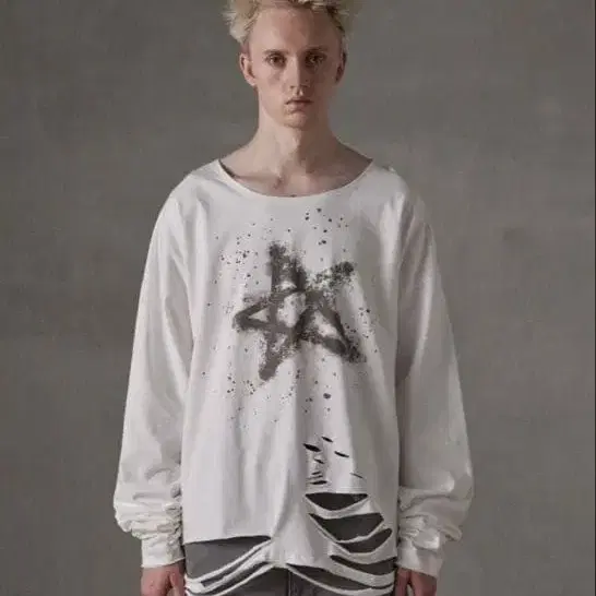 GRANCY 큐빅 디자인 그래픽 데미지 롱T