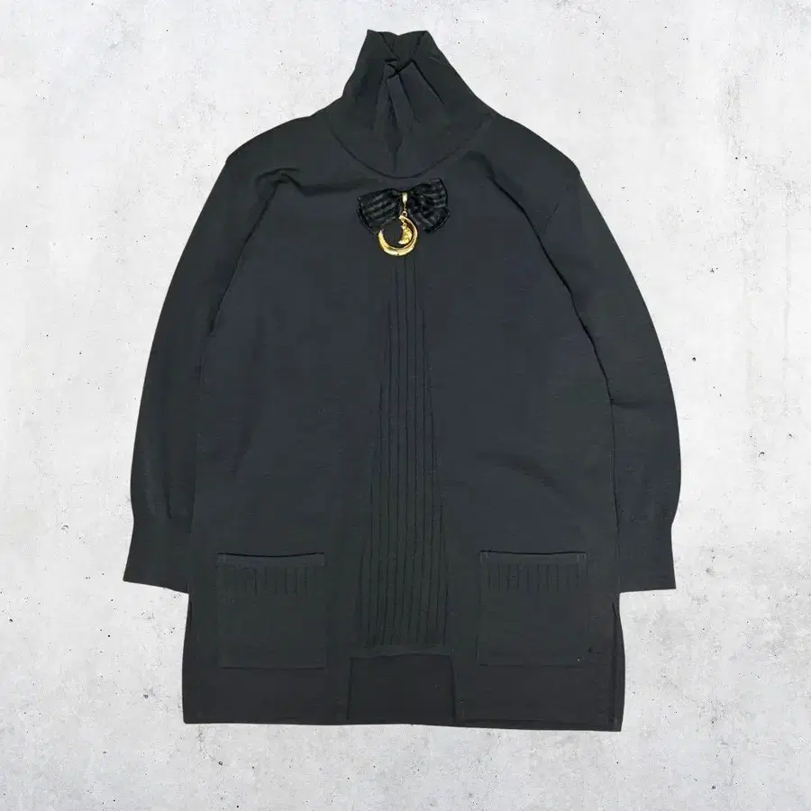 초승달 리본 브로치 포함 다크 그레이 니트 긴 기장 일본제