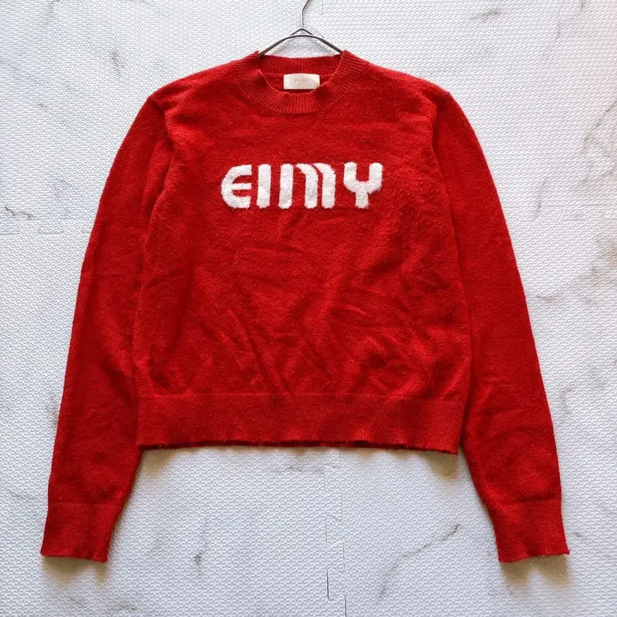 새상품급 에이미 이스트 월 로고 니트 풀오버 크루넥 빨간색