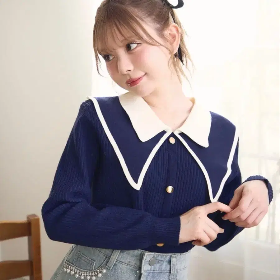 자동 번역되었어요. 원문보기세일러 카라 디자인의 네이비 리브 니트