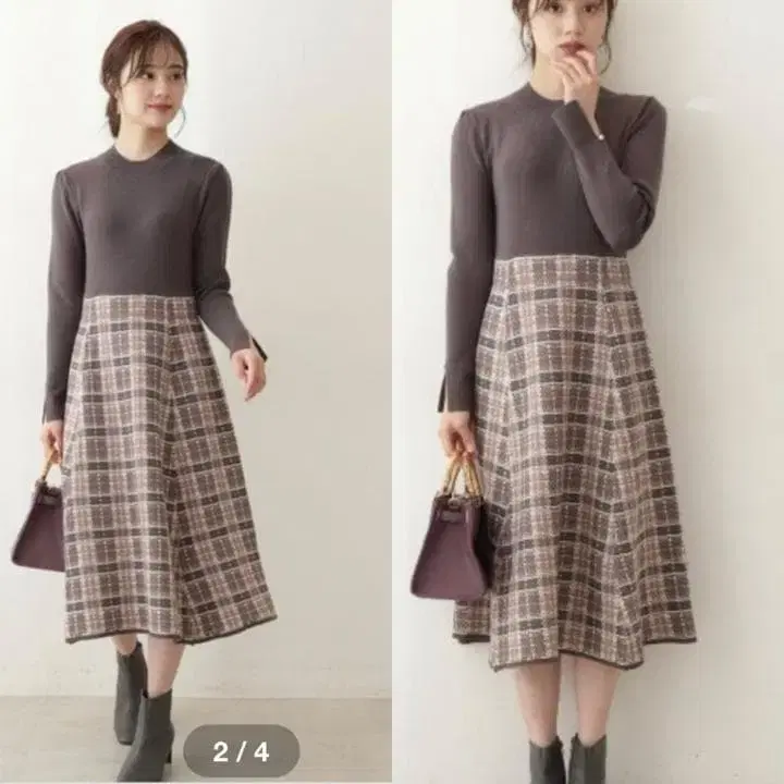 미인꽃 12월호 게재 휴이 미사토 씨 착용 상품 체크 도킹 니트 프로포션