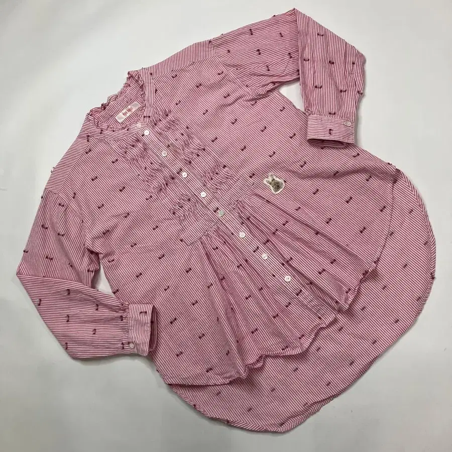 피코 프릴과 토끼 자수가 들어간 아주 귀여운 스트라이프 블라우스입니다.