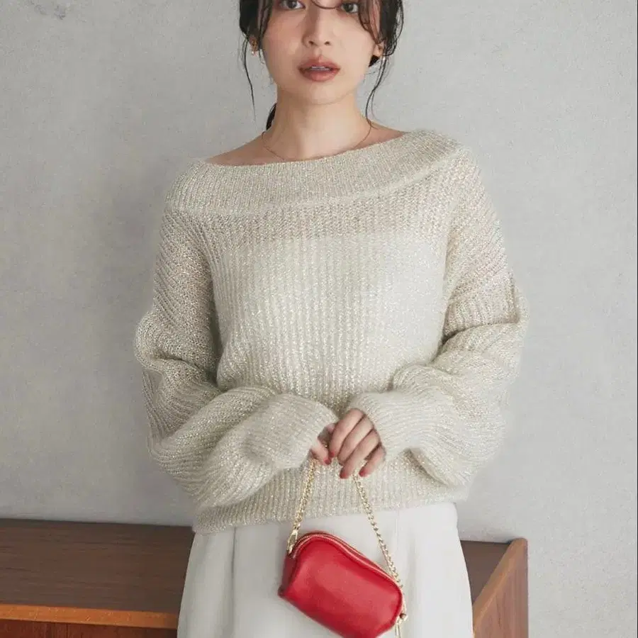 반짝이는 라메 x 포근한 모헤어 소재가 다가오는 계절에 잘 어울리는 니트입니다* 크롭 기장으로 어떤 하의와도 잘 어울리며, 고급스러운 골드 컬러라 색상 매치도 쉽습니다 ◎ 눈에 띄는 흠집이나 얼룩 없이 깨끗한 상태입니다. ※ 촬영 시에만 행거에 걸었으며, 평소에는 접어서 보관했습니다. 사이즈: 프리 사이즈 컬러: 골드 정가: 18,920엔 ( 이하, 공식 사이트 발췌 ) 고급스러운 라메와 오프숄더로 여성스러운 무드 UP을 연출하는 모헤어 니트 ● 디자인 포근한 키드 모헤어를 사용한 니트 오프숄더 디자인이 등장! 트렌디한 오프숄더 디자인으로 데콜테 라인을 예쁘게 보여줍니다. 내추럴한 스타일링으로 성숙한 분위기를 연출. 부드러운 키드 모헤어의 고급 실에 반짝이는 와이드 라메로 화려하게 마무리했습니다. 볼륨감 있는 긴 소매가 포인트로 여성스러운 인상을 줍니다. 팬츠, 스커트 어디에나 잘 어울려 돌려입기 좋은 아이템입니다. ● 포인트 부드러운 촉감의 키드 모헤어 사용 화려하고 고급스러운 라메 니트 시어한 느낌으로 성숙한 분위기 트렌디한 오프숄더 스타일 연출 가능 ● 추천 코디네이트 입는 것만으로도 화려한 라메 니트이므로, 심플한 하의와 매치하는 것만으로도 코디가 완성됩니다. 루즈한 디자인을 살려, 드레이핑이 있는 스커트와 함께 코디하는 것을 추천합니다.