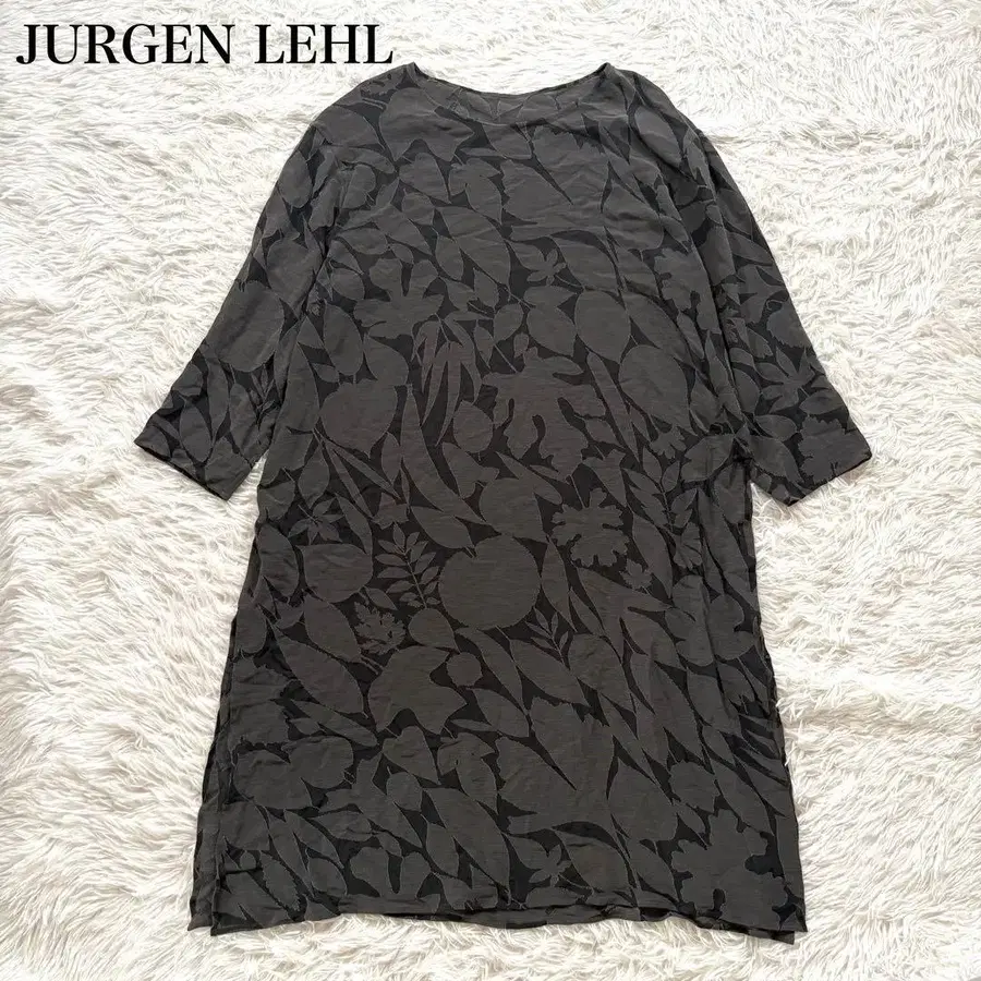 새상품급 ✨ JURGEN LEHL 요건 레일 자카드 보태니컬 무늬 원피스 그레이 슬릿