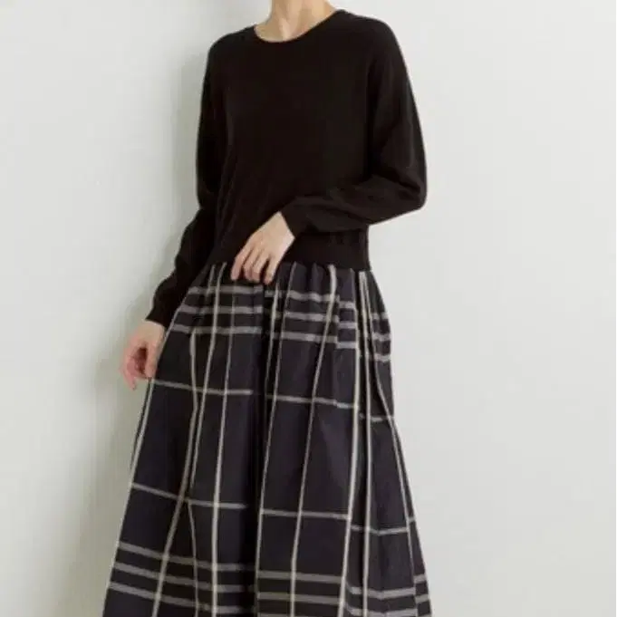 INED CLARO 모치모다 니트 x 체크 타프타 원피스 시착만