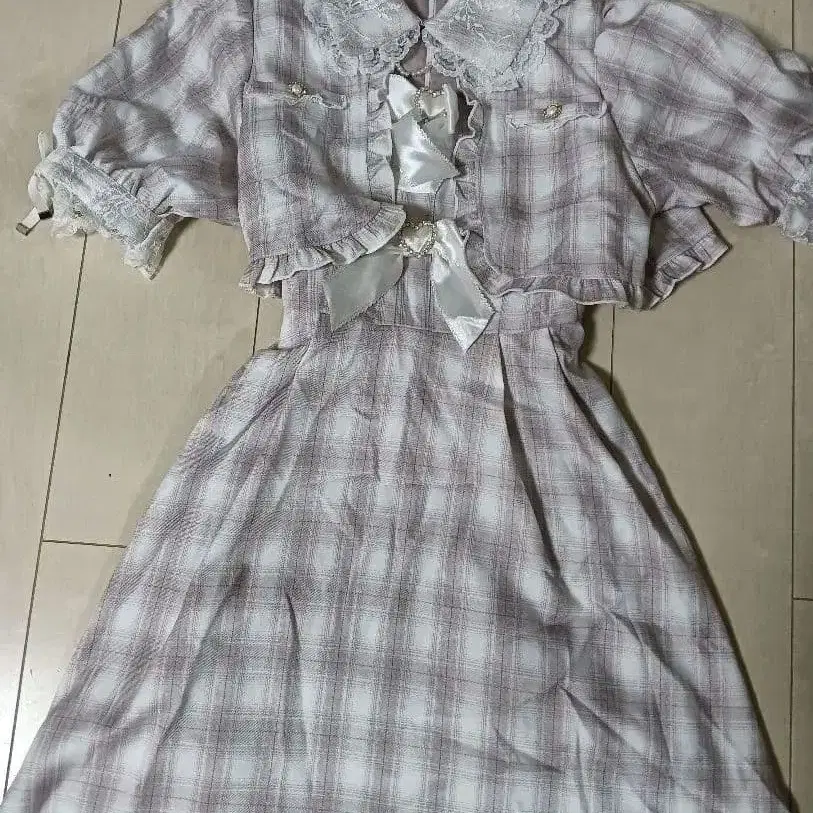 ROJITA 연보라 체크 무늬 반팔 원피스